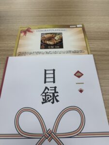 その中でくじ引き大会が開かれ1番の番号札を引き、呼ばれるのを待っているとなんと、、、。