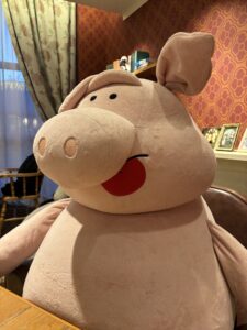 私達が座った席にはイタズラブタがなんだか偉そうに座ってました(笑)